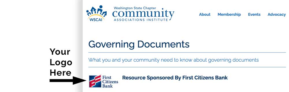 Benefits: “This page sponsored by [your company logo]” at the top of the Governing Documents resource page. Logo links to your listing in the WSCAI Business directory!